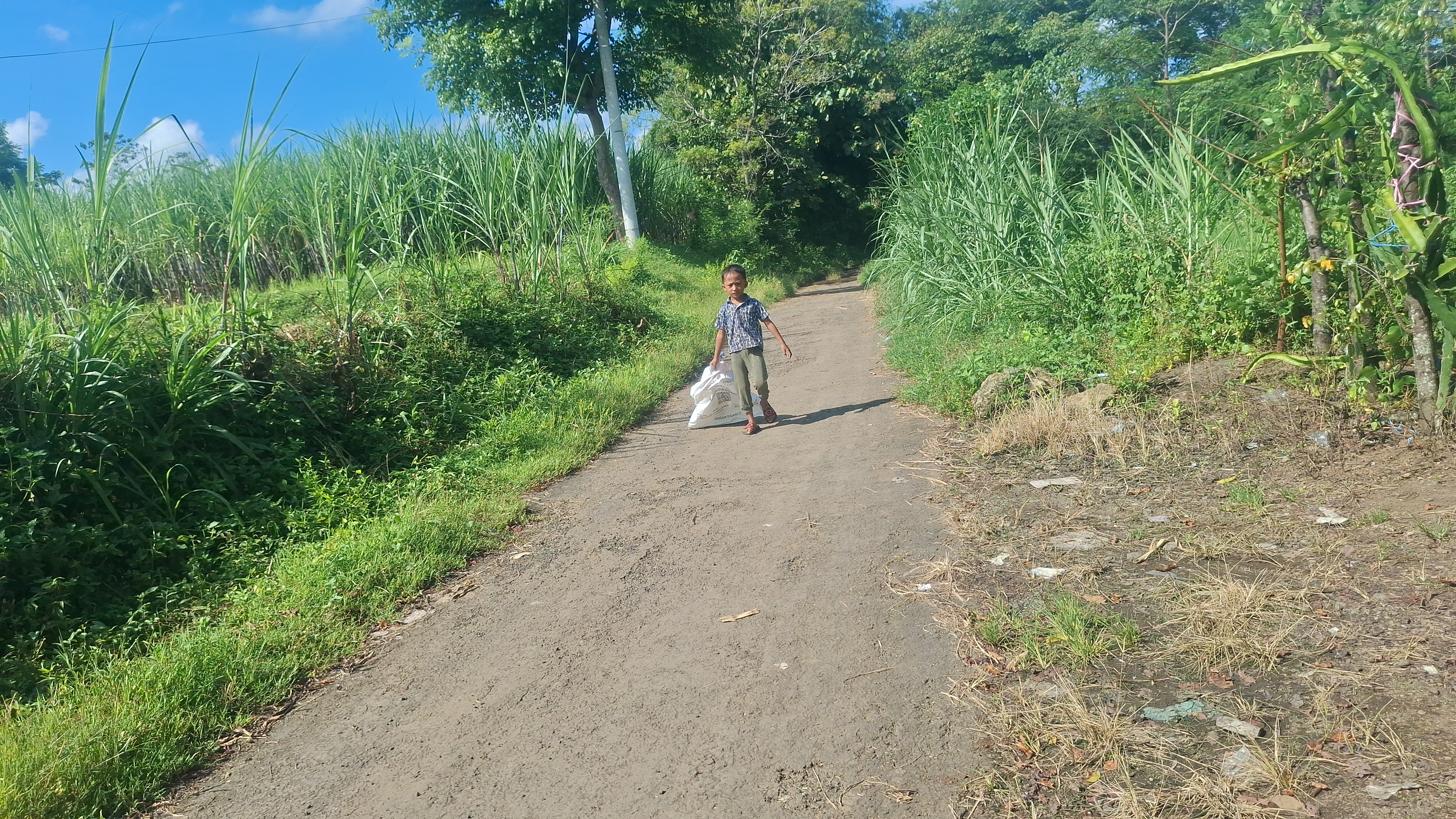 Setiap pagi, saat anak-anak lain berangkat sekolah, Lukman justru memanggul karung. Ia berjalan dari jam 8 pagi hingga siang, memunguti janggel jagung sisa panen untuk dijual. Satu karung, hanya dihargai 7 ribu rupiah.