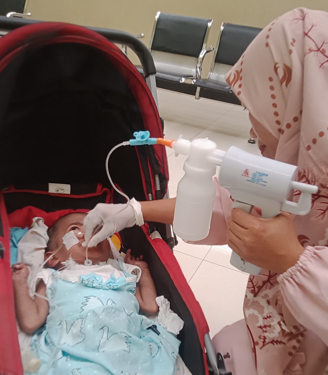 Bocah ini bisa bertahan dengan tabung oksigen, tapi seringkali ia kesulitan karena orang tuanya tak mampu beli.💔