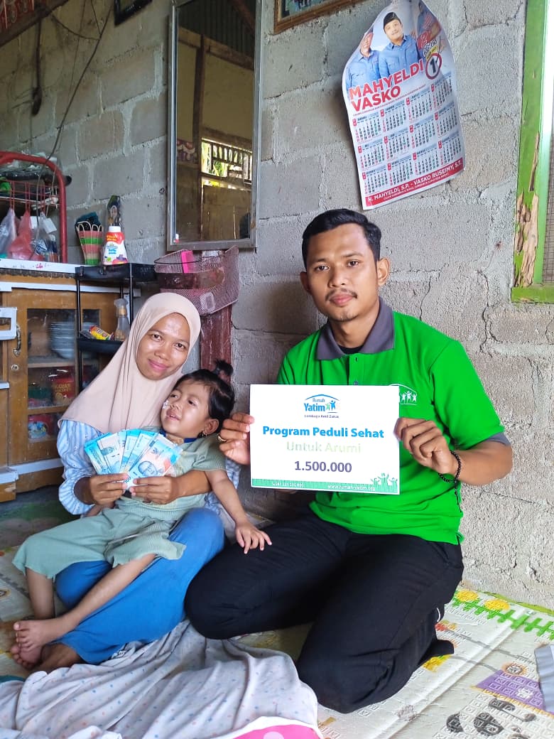 Alhamdulillah dana yang di titipkan ke https://berkahyatim.com/arumiry telah disalurkan Kepada Arumi. Kali ini kami datang dengan memberi bantuan berupa Uang Tunai.