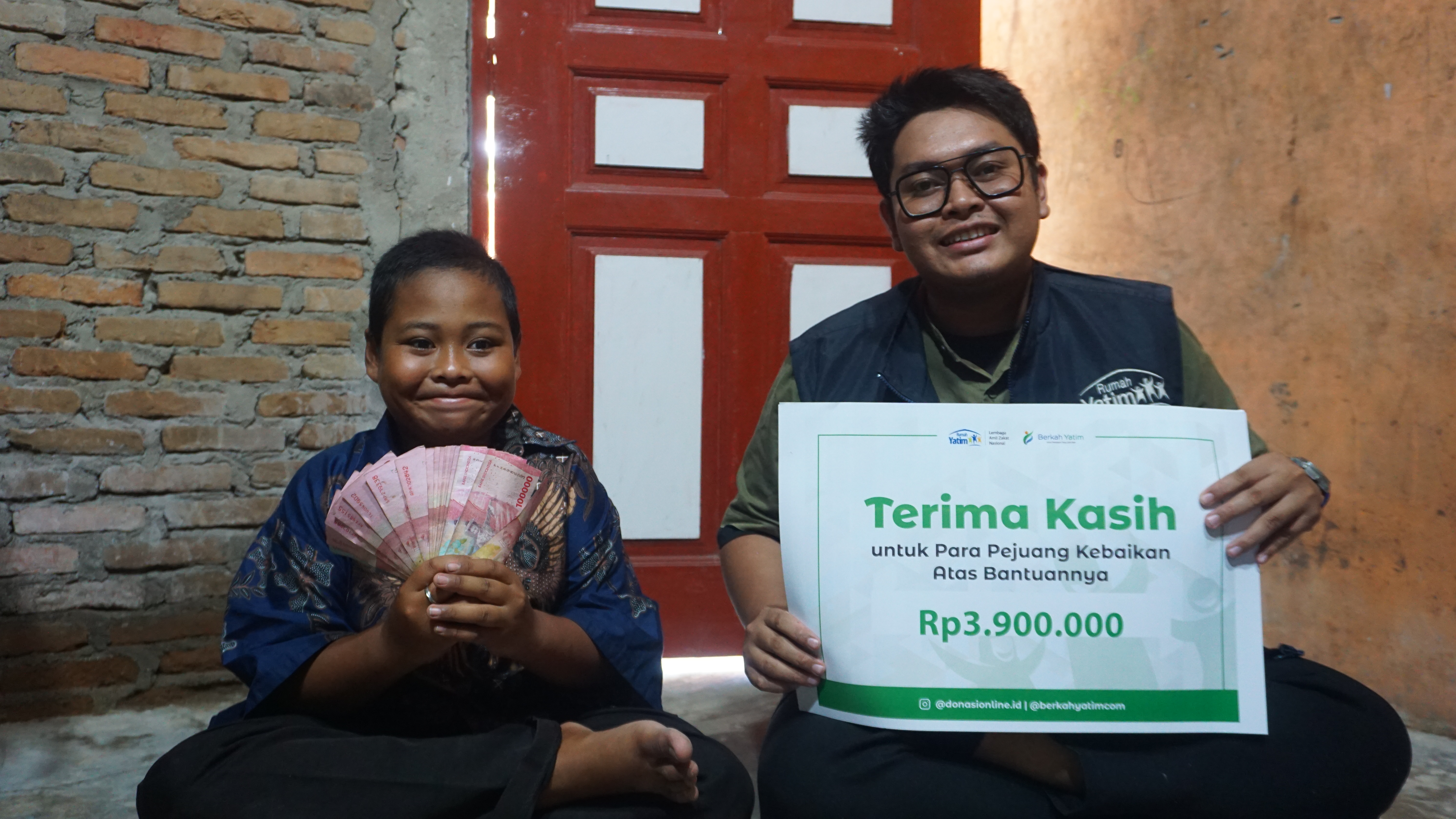 Alhamdulillah dana yang di titipkan melalui https://berkahyatim.com/bantuarifry telah kami salurkan kepada Arif. Alhamdulillah untuk penyaluran Ke 3 ini kami datang dengan memberi bantuan berupa Uang tunai.