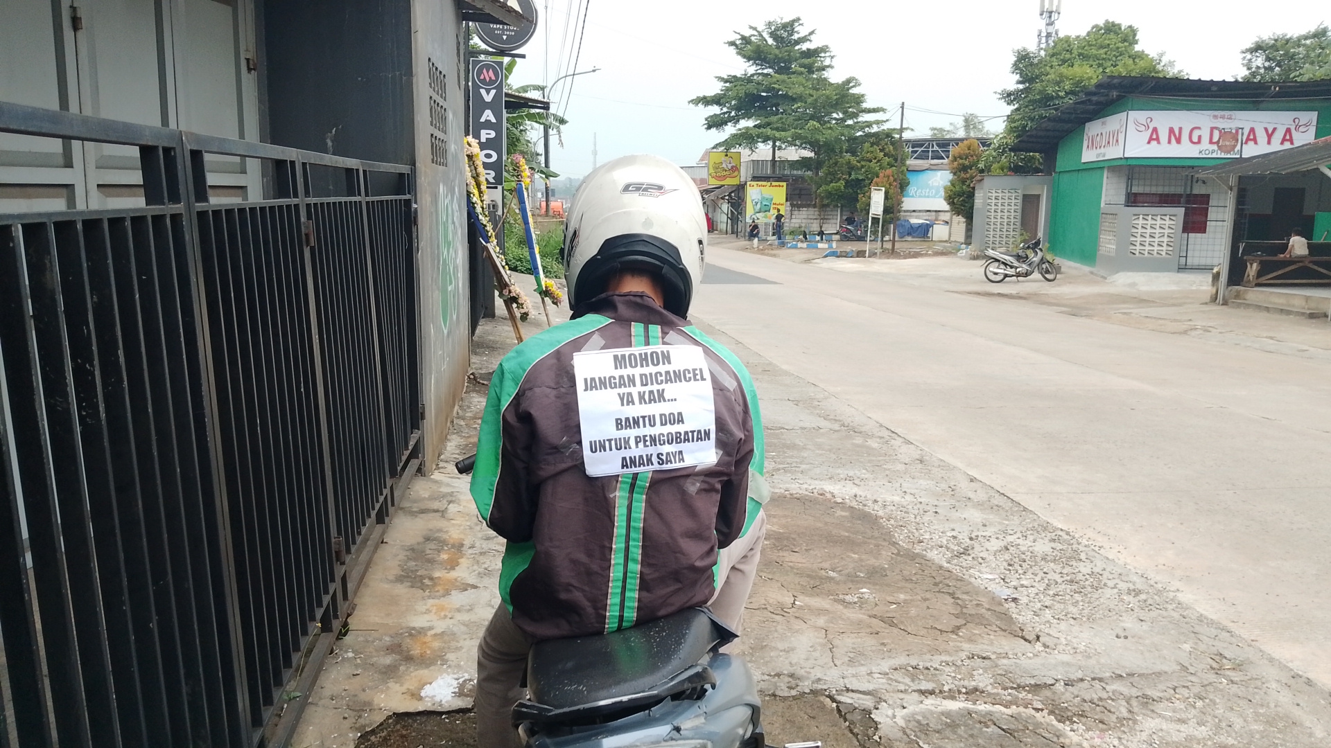 Ia hanya seorang ojol dari jam 9 pagi hingga malam. Dan sehari hanya 50-70rb yang didapat.