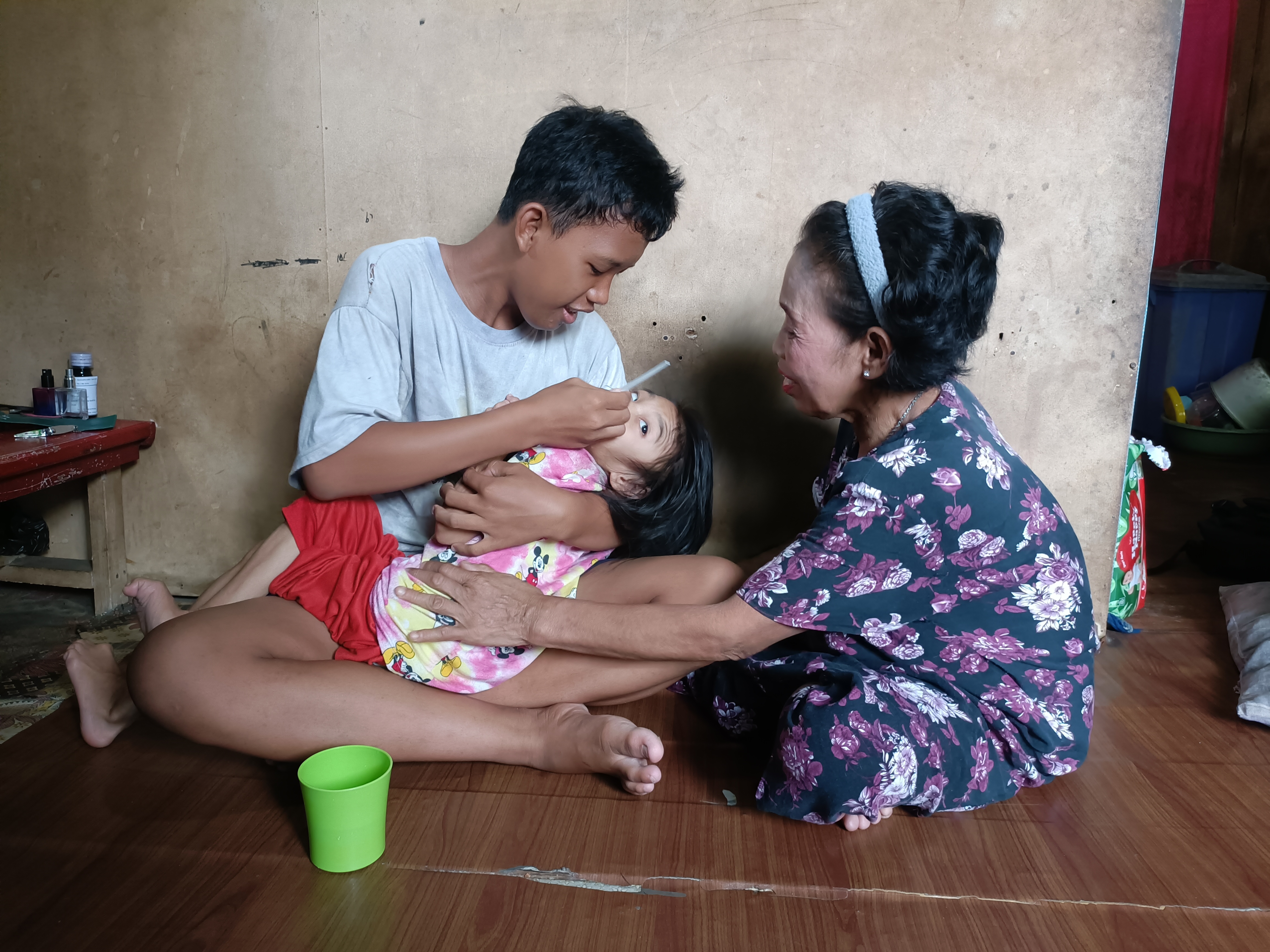 Bubur dan makanan lembut yang seharusnya ia konsumsi pun sudah lama tak terbeli karena keluargana tak sanggup.