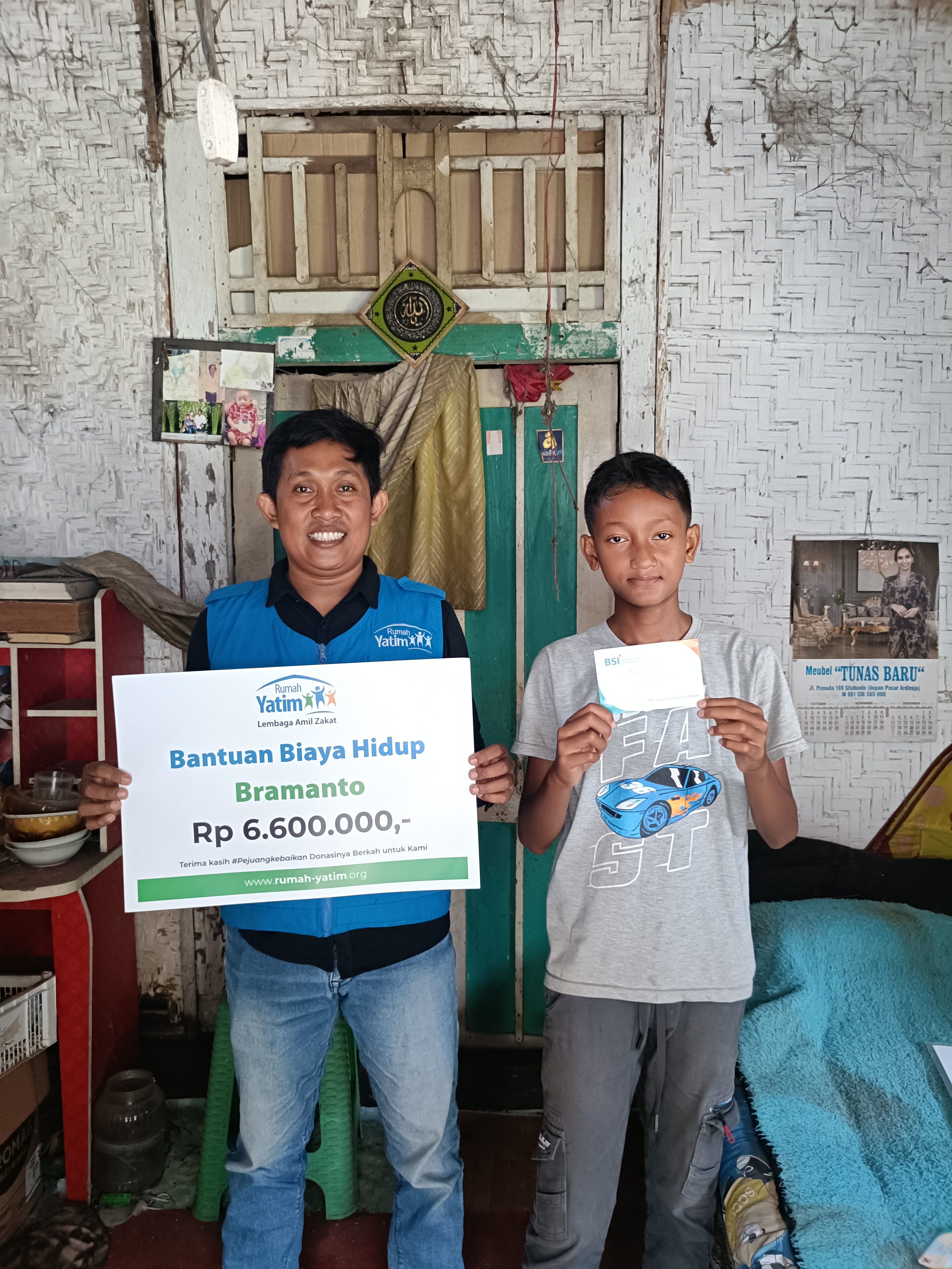 Alhamdulillah dana yang di titipkan melalui https://berkahyatim.com/bramantory telah kami salurkan kepada Bramanto. Alhamdulillah untuk penyaluran Ke 2 ini kami datang dengan memberi bantuan berupa Uang tunai.