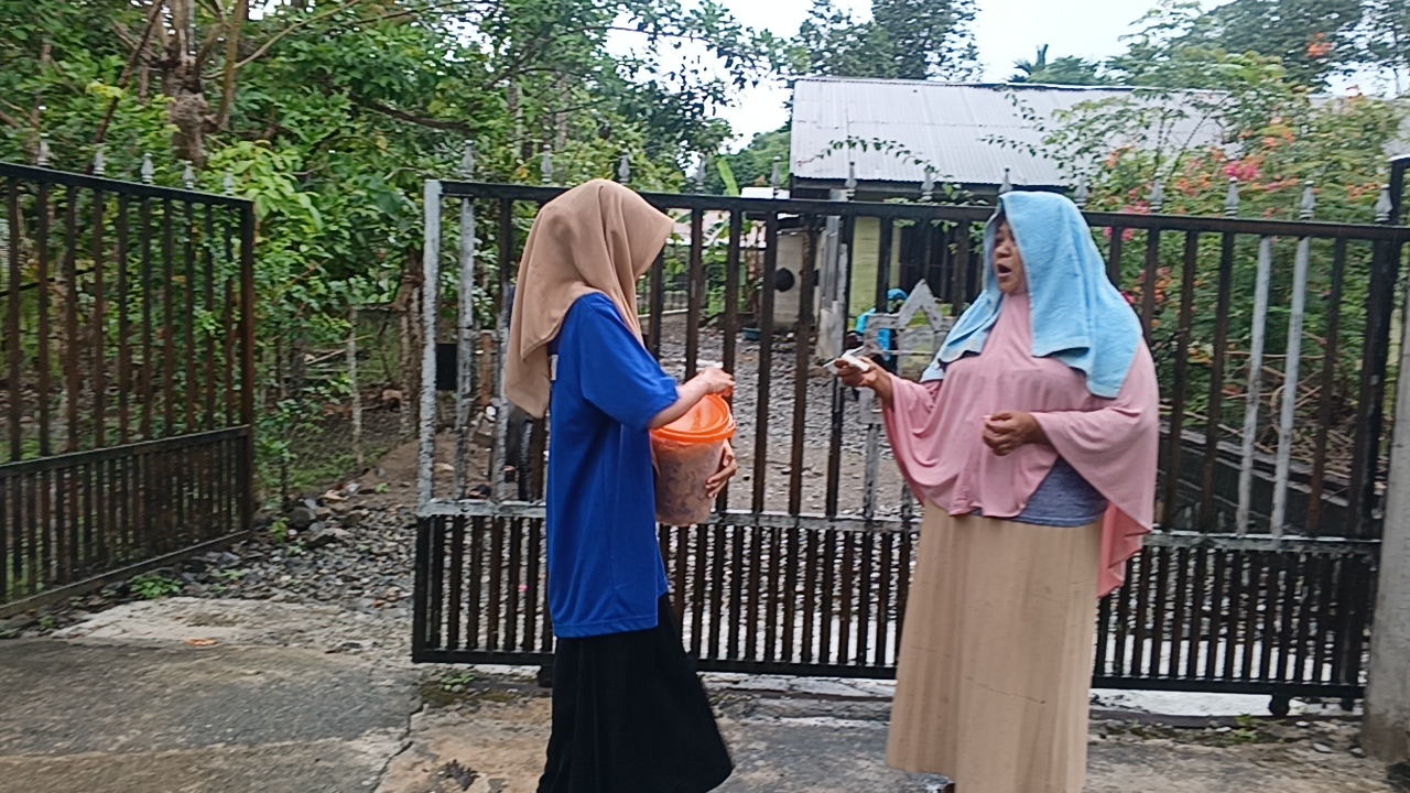 Sepulang sekolah Fatin menyusuri kampung hingga magrib, menjajakan kue demi membantu ibunya sehari-hari.