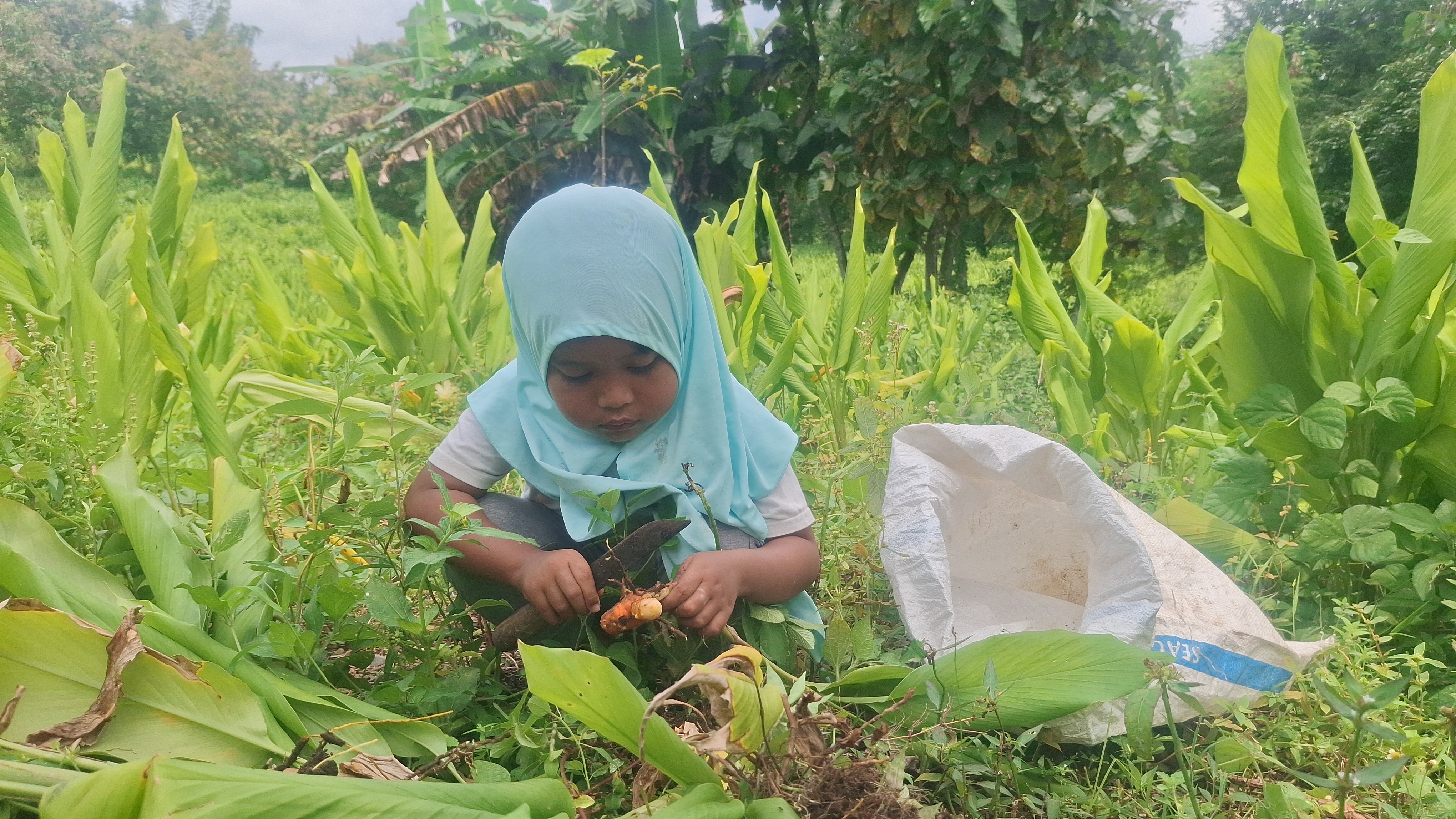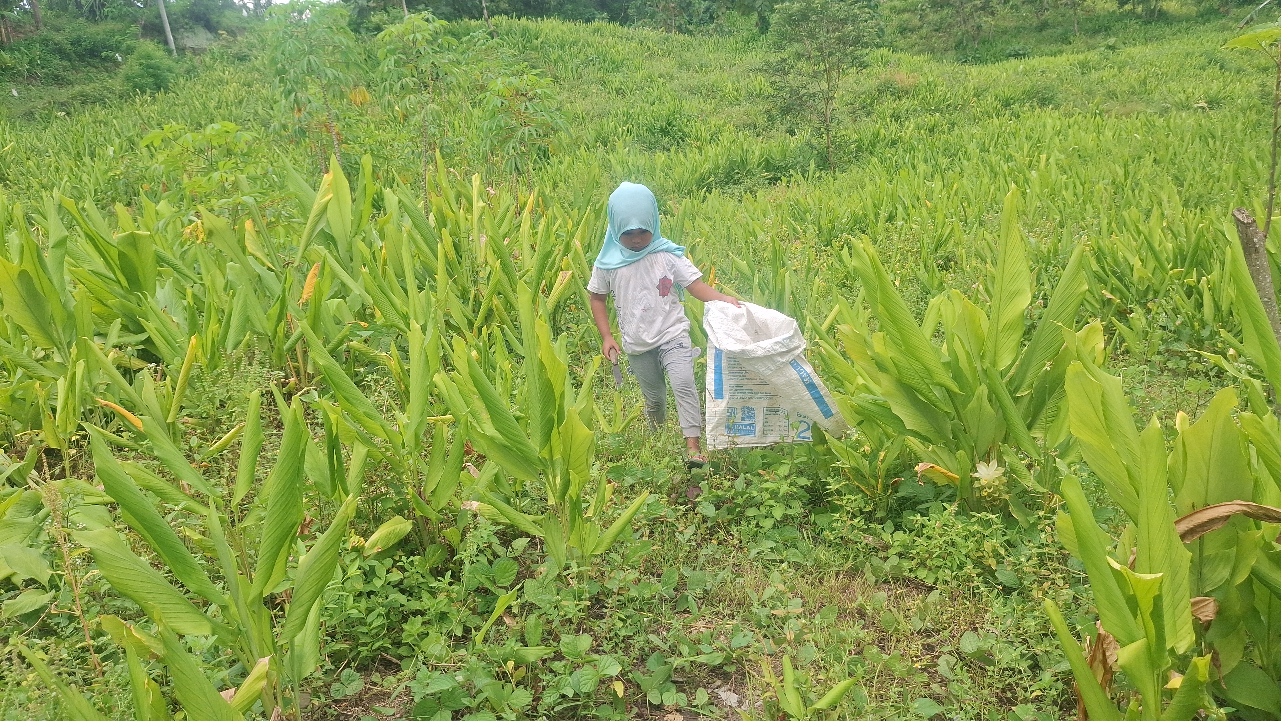 Setiap pagi, Habibah berjalan sejauh 7 km ke ladang kunyit di perbukitan. Dengan kaki telanjang dan membawa karung, ia bekerja dari pagi hingga sore hanya untuk mengumpulkan setengah karung kunyit. Upahnya? Hanya sekitar 10 ribu rupiah per hari.