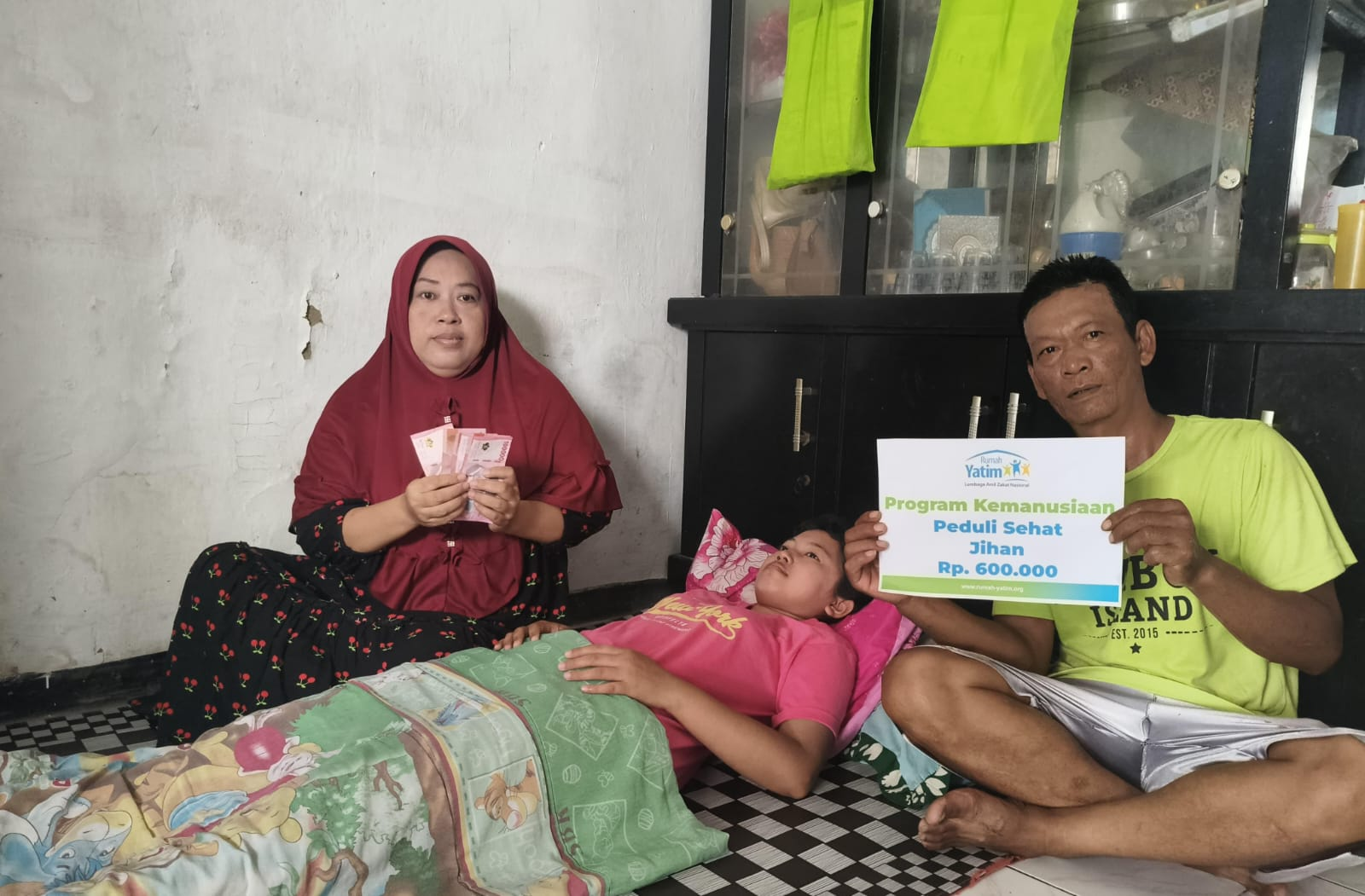 Alhamdulillah dana yang di titipkan melalui https://berkahyatim.com/jihansembuhry telah kami salurkan kepada Jihan. Alhamdulillah untuk penyaluran Ke 2dan Pak Hendi, Selaku Relawan Rumah Yatim Area Jabodetabek menyatakan bahwa JIhan harus kontrol ke rumah sakit sebanyak dua kali seminggu untuk melakukan CT Scan. Kemudian, Jihan juga harus mengurus berkas ke Poli Bedah Syaraf untuk pengobatan lanjutan. Rencananya hari jum'at,01 Mei 2026 Jihan harus melakukan anestesi untuk Obat Bius.
