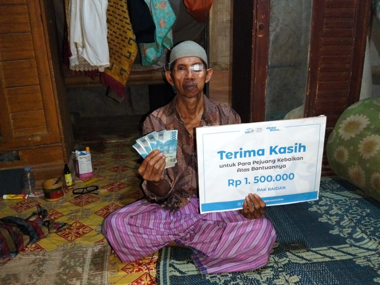 Kakek Raidan mengucapkan “Terimakasih banyak para #pejuangkebaikan yang telah membantu dan membersamai Kakek Raidan hingga saat ini. Kakak adalah pahlawan bagi Kakek Raidan dalam menjalani hari-harinya. Semoga apa yang telah diberikan menjadi penglapang untuk rejekinya, pembersih untuk hartanya serta Allah SWT limpahkan berjuta kebaikan serta keberkahan untuk Kakak dan keluarga.. Tak lupa senantiasa diberikan kesehatan dan kemudahan dalam segala urusannya. Aamiin.”