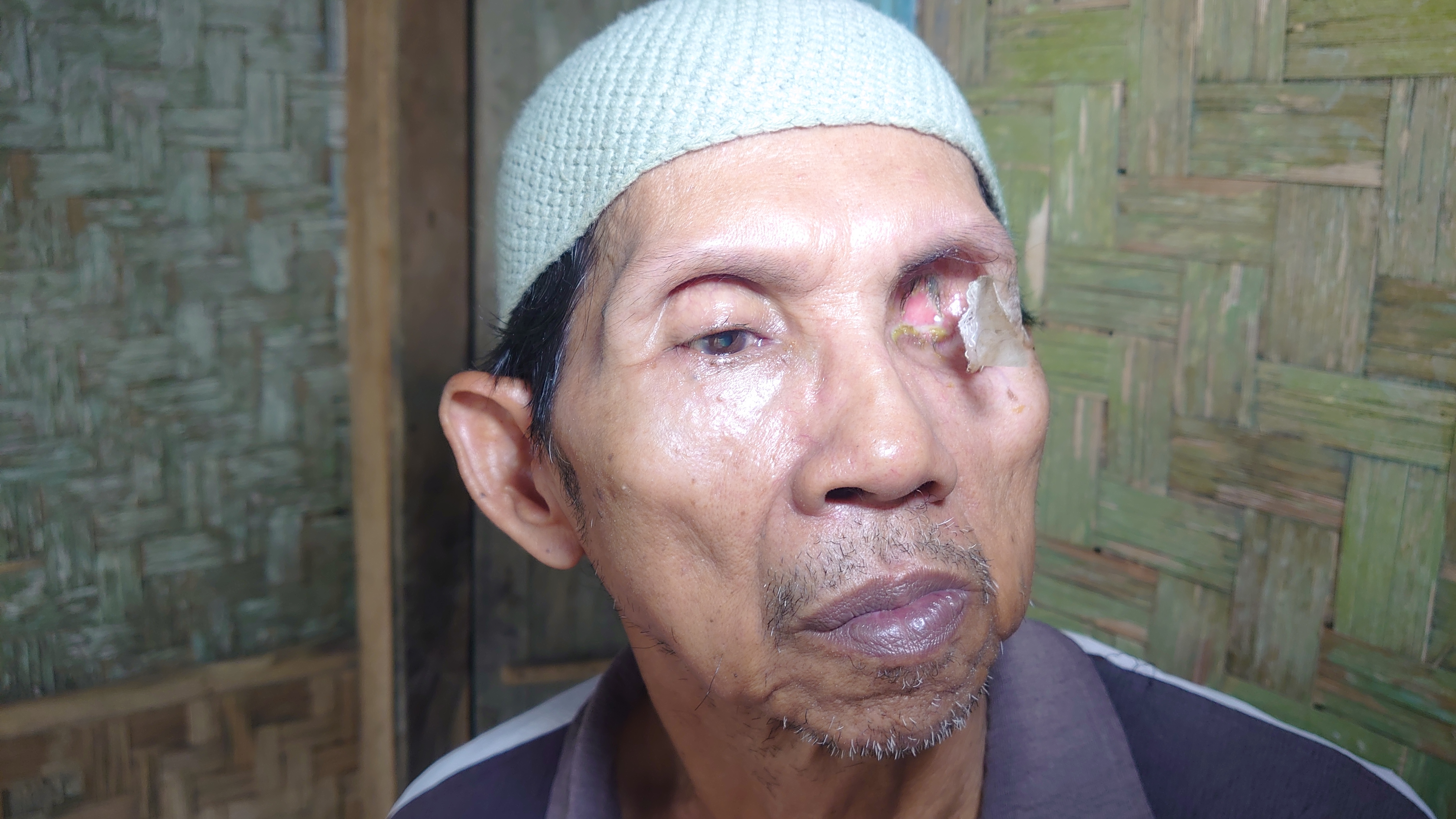 Kakek Raidan harus terus berjuang sambil menahan sakit, matanya sering mengeluarkan cairan dan nanah karena tak bisa berobat.