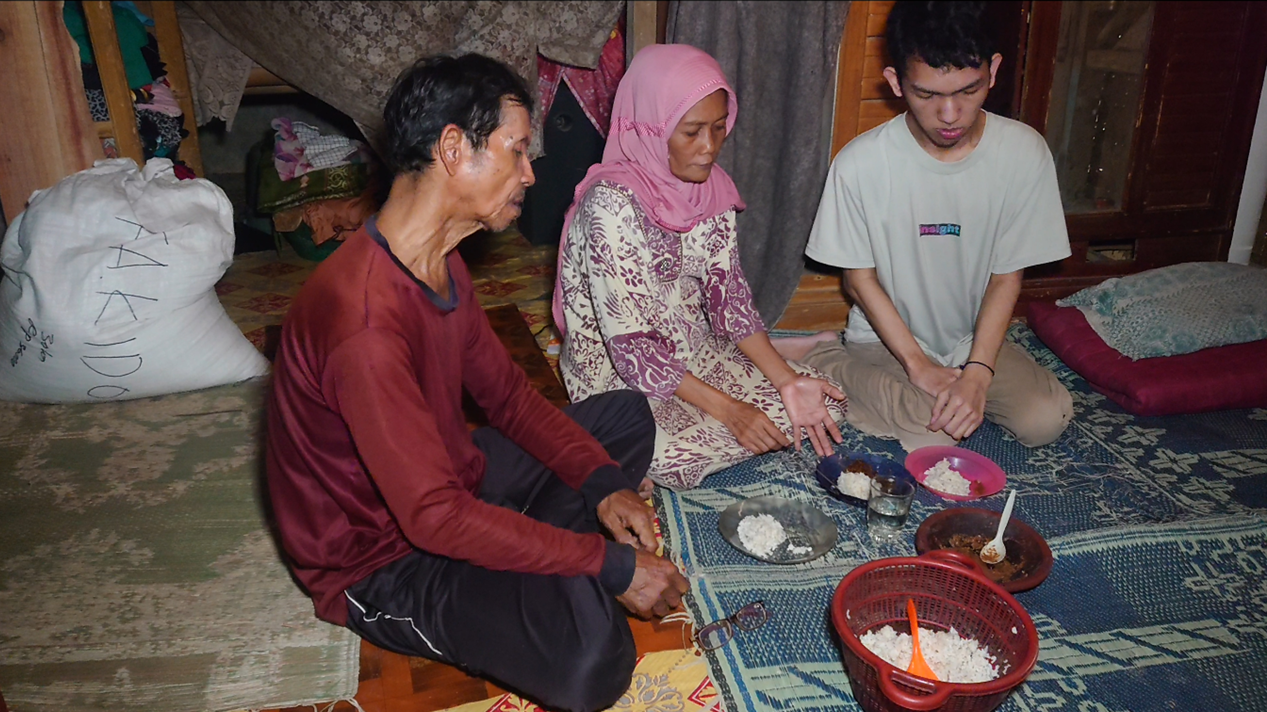 Setiap hari ia bekerja sebagai pengumpul sekam (kulit luar padi), upahnya hanya Rp1.000/karung. Sebulan kakek dapat 100rb, uang itu dicukup-cukupkan untuk kebutuhan sehari-hari.
