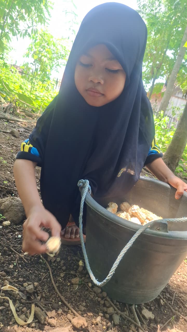 Setiap hari sepulang sekolah, ia harus mencari jenggel jagung, mengangkat sak 25 kg seorang diri, lalu menjualnya seharga 5 ribu rupiah. Sering kali dagangannya tidak laku, karena orang kini lebih banyak pakai kompor gas.