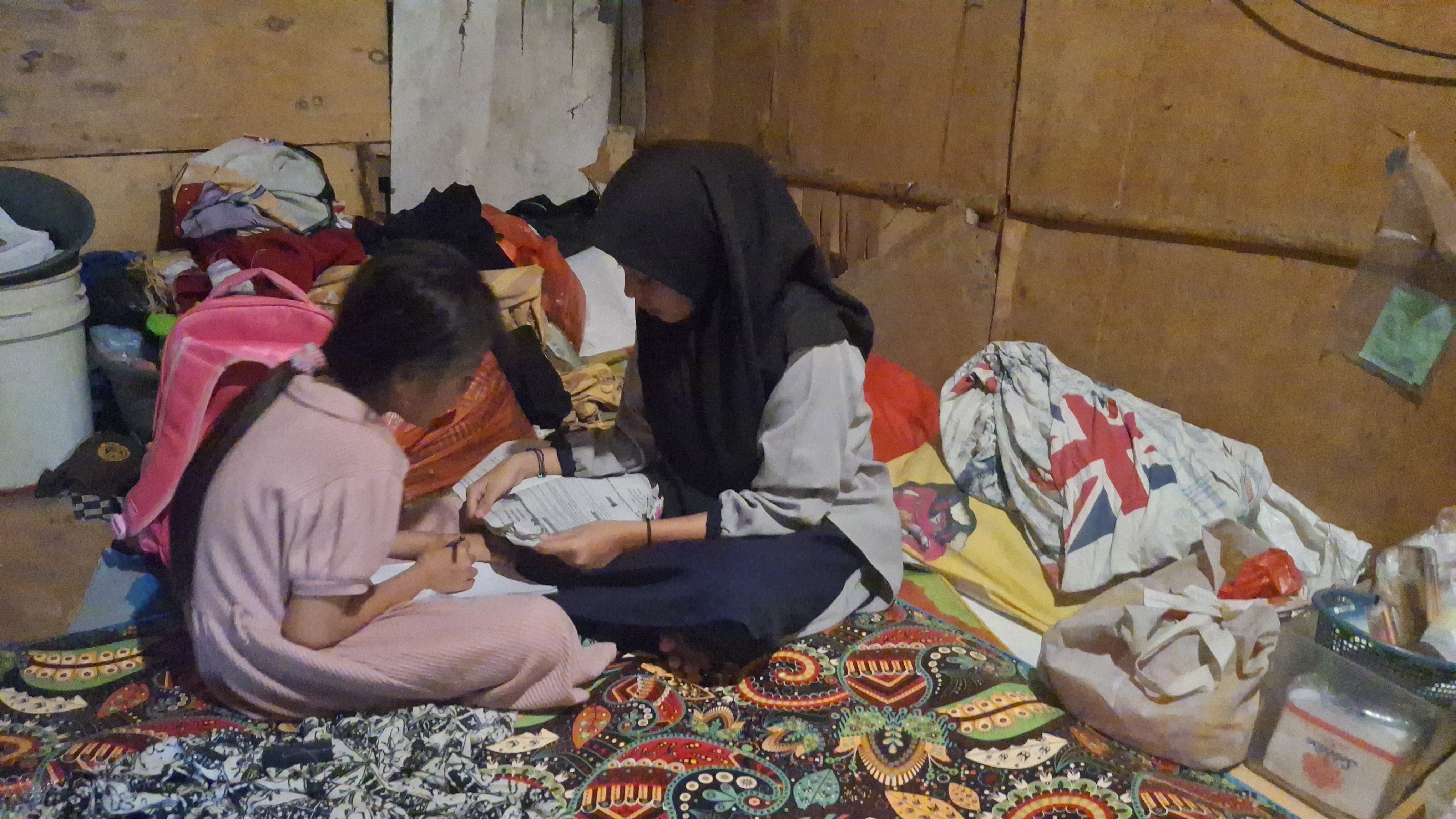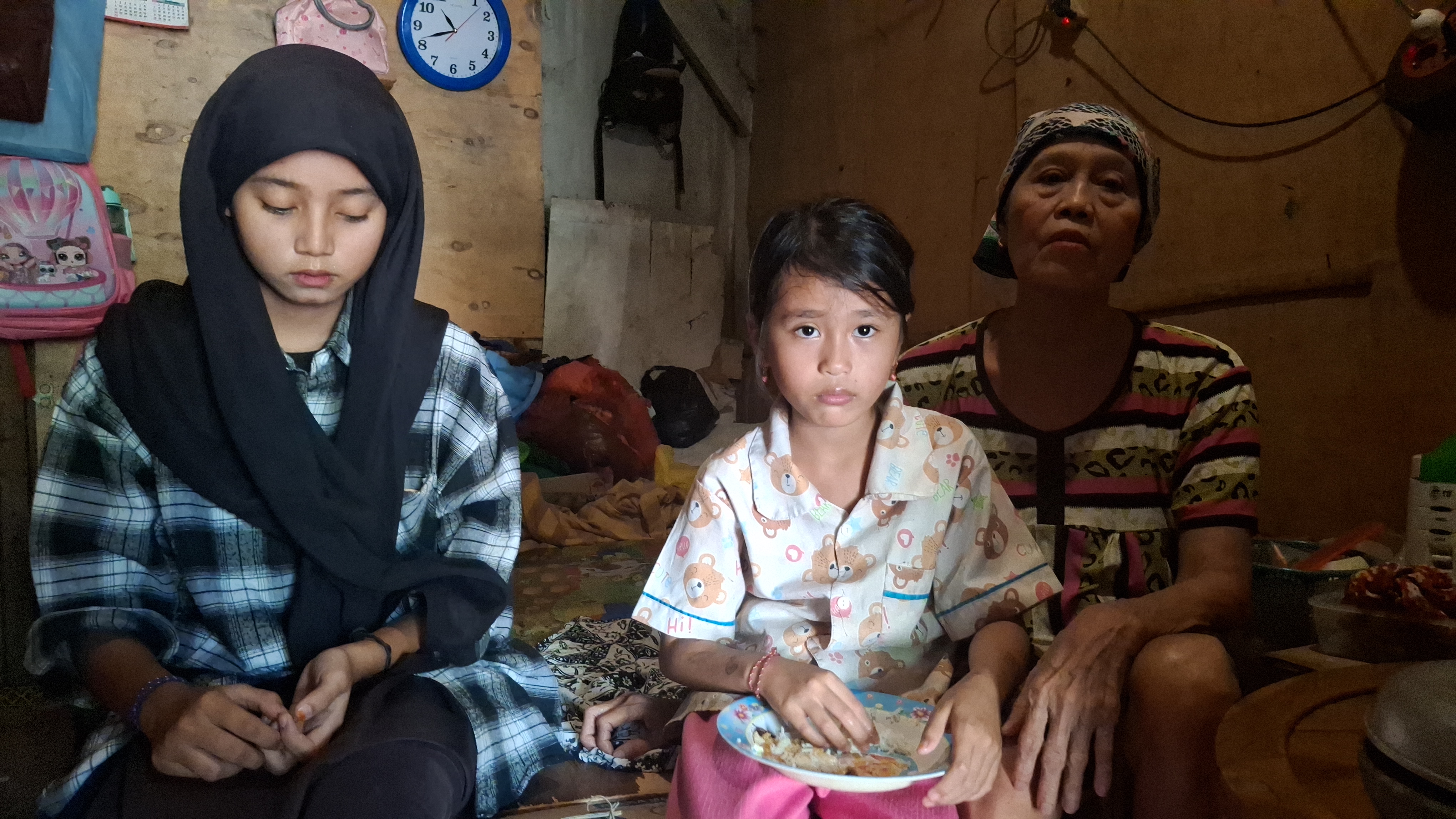Mereka tinggal bertiga di sebuah kontrakan sempit di belakang tempat pembuangan limbah plastik. Sewa bulanannya Rp150.000, dan itu pun sering telat dibayar.