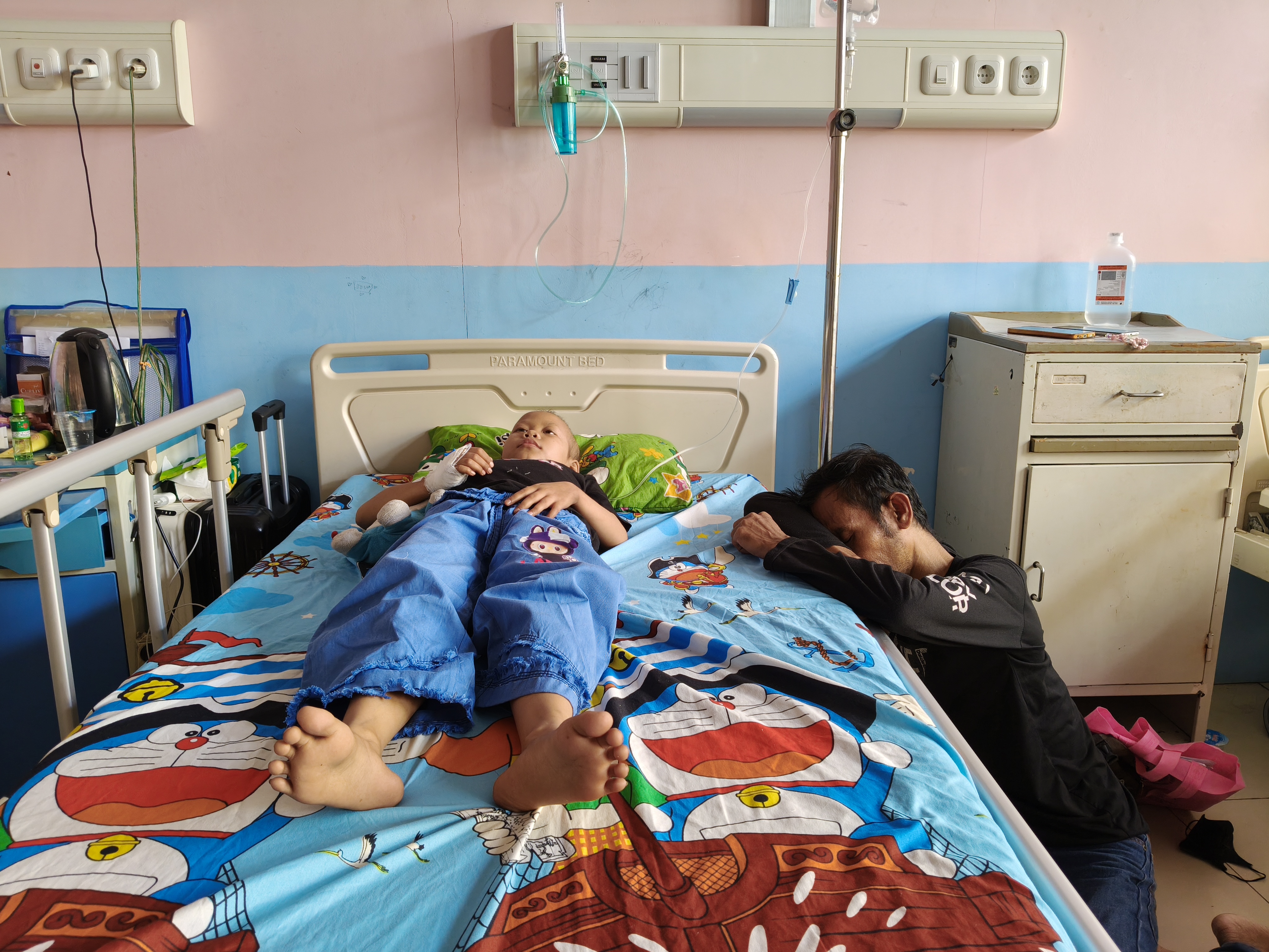 Ia sudah 2 kali kemoterapi, tubuhnya melemah, rambutnya mulai rontok, dan hampir setengah tahun tak bisa sekolah.