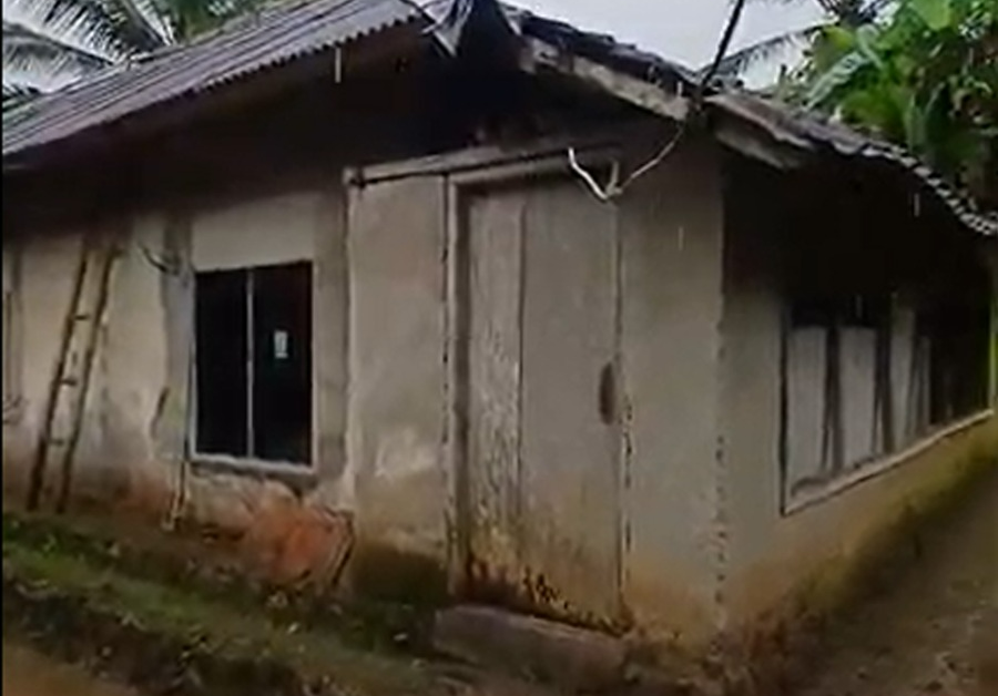 Atapnya bocor, dindingnya mulai retak dan rapuh, kayu penyangga pintu dan jendela sudah lapuk dimakan usia.