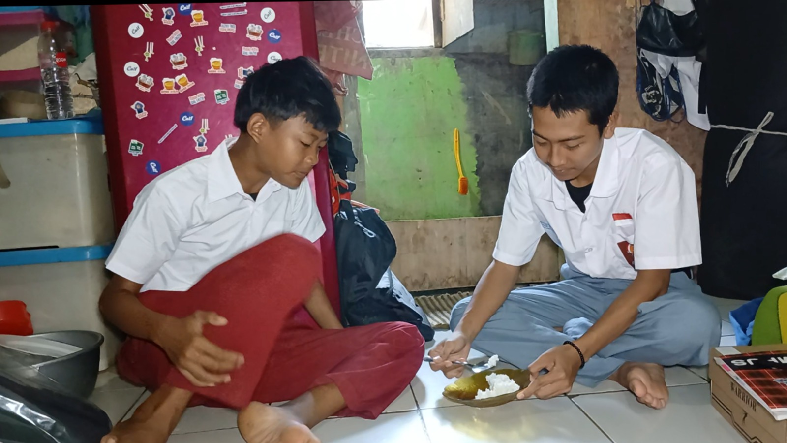 Mereka Sepulang sekolah harus menjadi tukang bersih-bersih botol bekas agar bisa dijual. Hasilnya? Paling banyak 50rb seminggu, yang dimana untuk kebutuhan sehari-hari saja susah, apalagi untuk kebutuhan sekolah, beli baju bagus dan makan enak di Hari Raya nanti. Rasanya hanya mimpi.