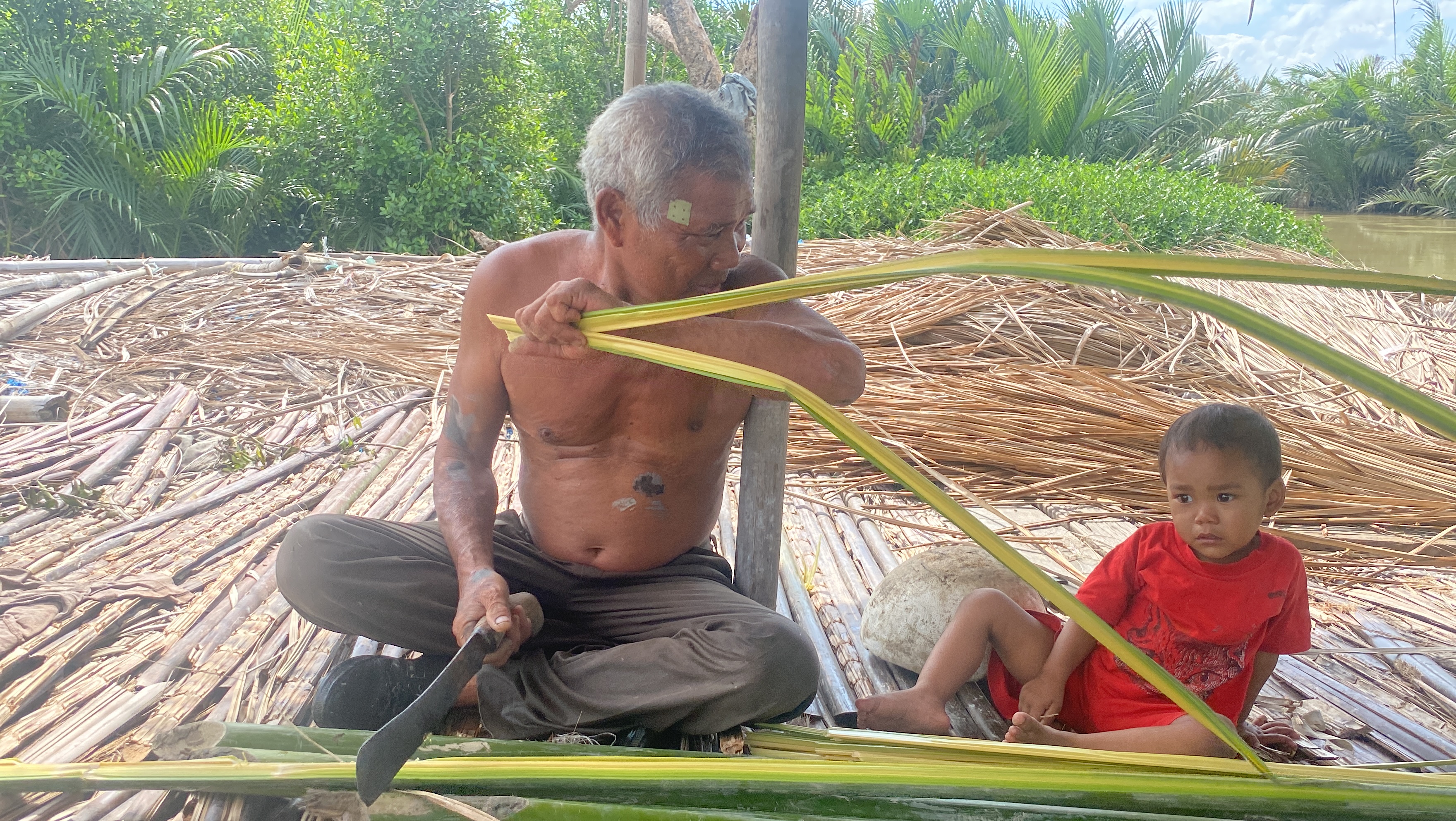 Mau tak mau, Kakek Amin lah yang harus merawat mereka. Setiap hari sang adik ikut dengan kakek ke hutan untuk mengambil daun nipah yang kemudian dipotong-potong menjadi sapu lidi.