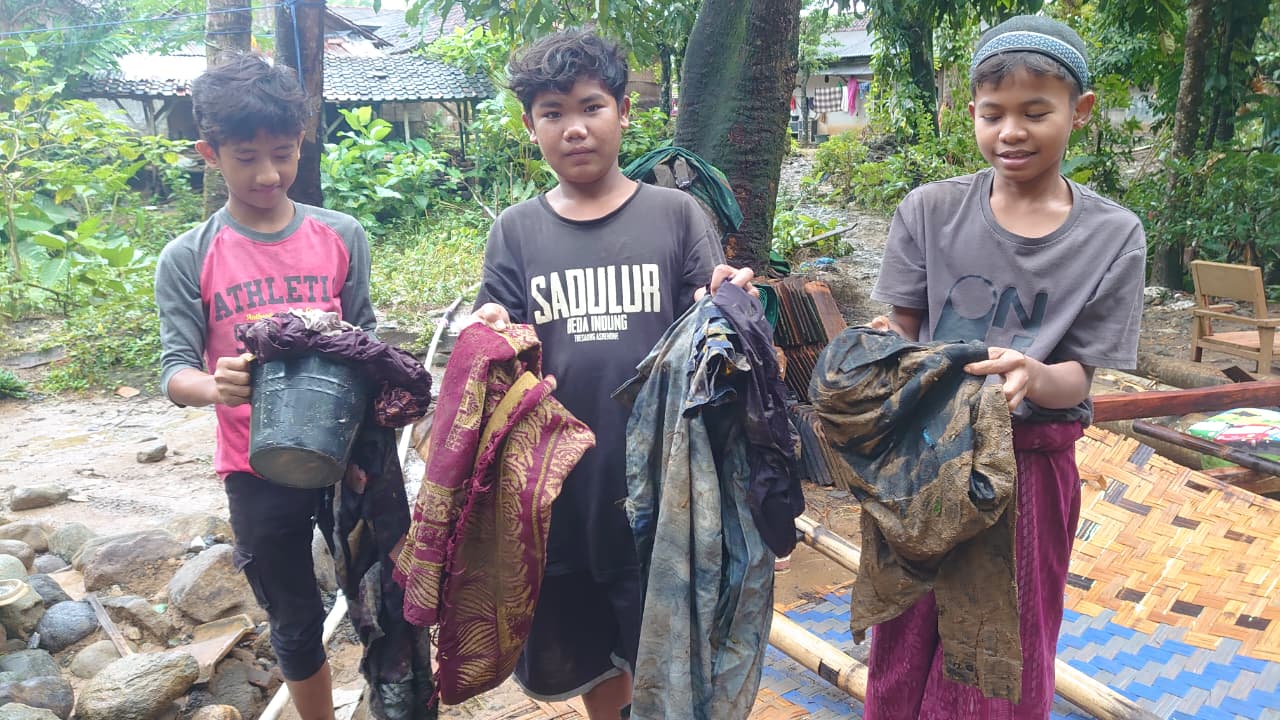Banjir bandang datang tiba-tiba dengan arus yang sangat deras, menghantam Pondok Pesantren Al-Asyabah di Desa Kertajaya.