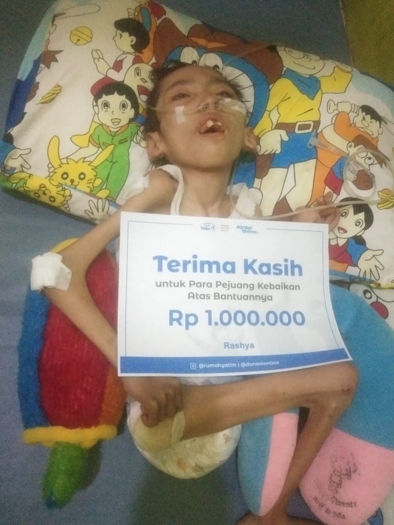 Rasya mengucapkan “ Terimakasih banyak para #pejuangkebaikan yang Telah membantu dan menyayangi Rasya, kalian semua adalah Pahlawan bagi Rasya, dan Rasya hanya bisa mendoakan semoga Allah SWT melimpahkan Rizkinya dan dipanjangkan Umurnya, Aamiin.”