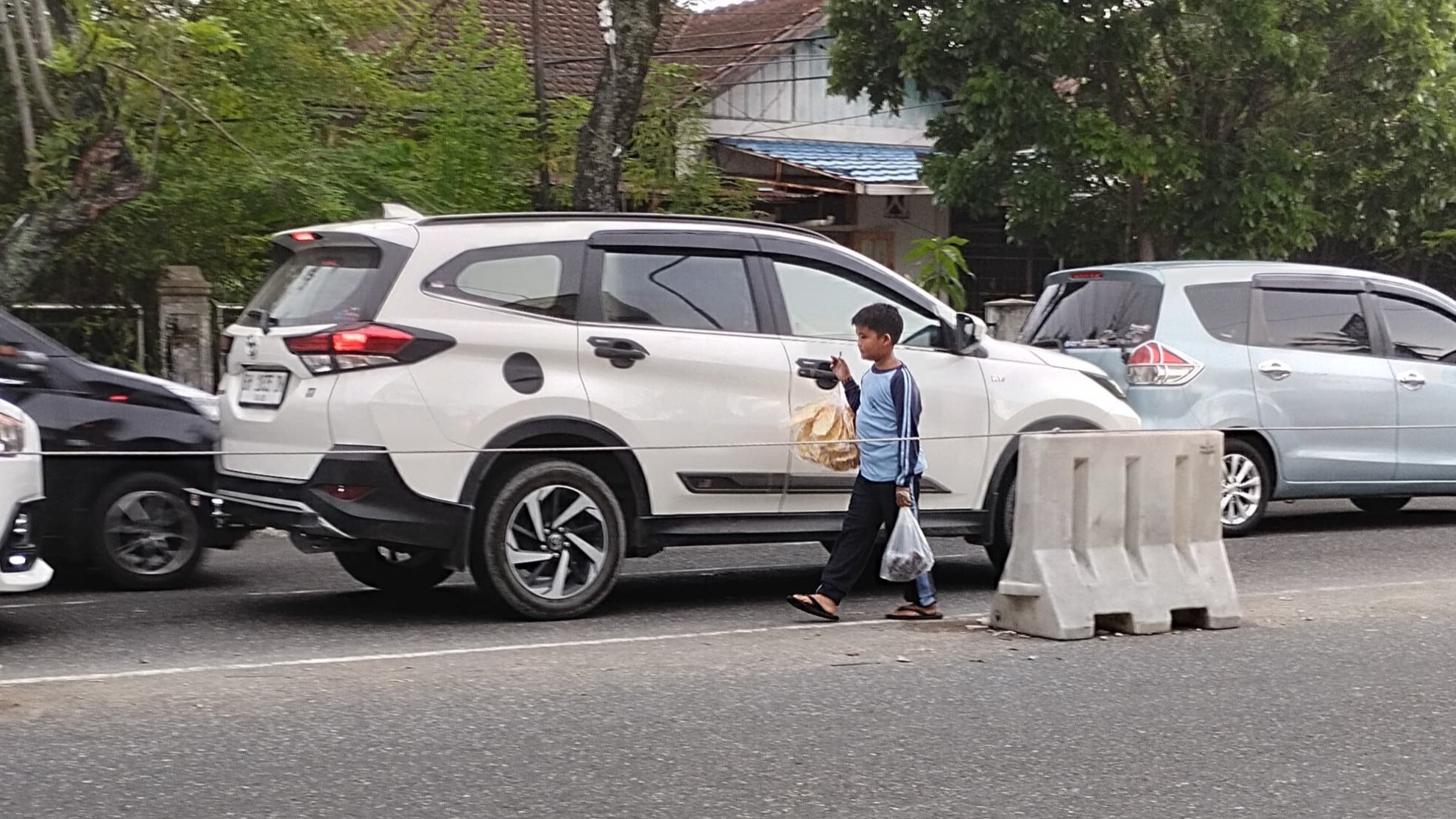 Ia di upah seribu dari satu bungkus kerupuk yang laku, uang nya di pake buat makan juga beli obat ibunya di rumah."Shadiq kan ga punya bapak, jadi ya harus cari uang sendiri" lirihnya. Ia akan terus berusaha meski lelah dirasakan saat berjualan, Saddiq harus kuat dan sabar.