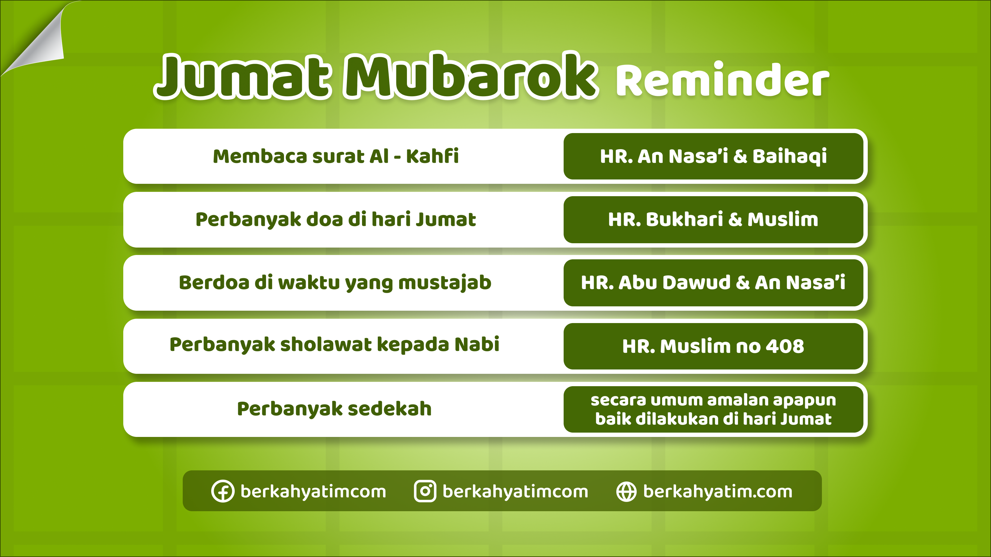 Maka jangan lewatkan Jumat tanpa amal. Isi dengan doa, dzikir, sholawat, dan sedekah. Karena di hari terbaik ini, setiap kebaikan sekecil apa pun bisa menjadi pemberat timbangan di akhirat. Jumat mubarak, Sobat #PejuangKebaikan