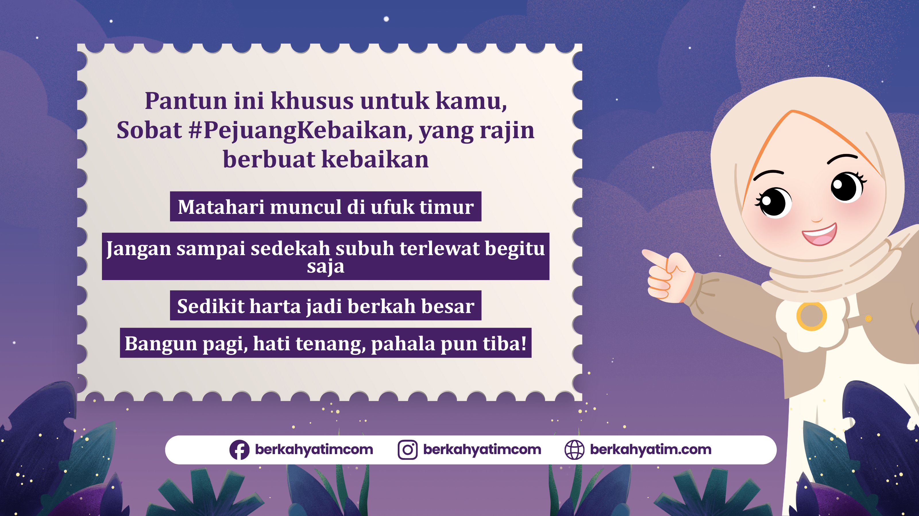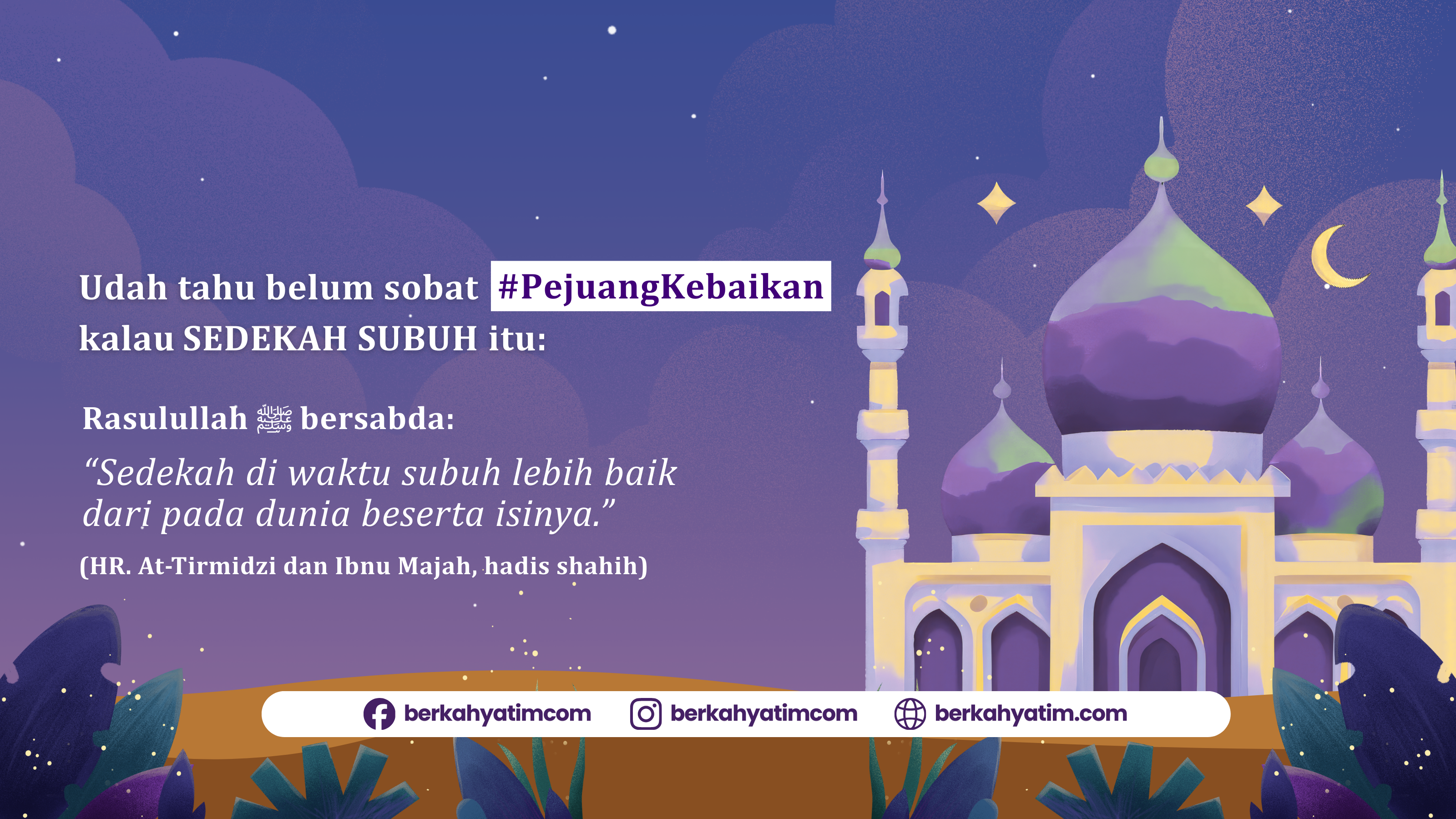 Lewat #SedekahSubuh, kita mau ngajak kamu memulai hari dengan cara yang berbeda bukan dengan terburu-buru, tapi dengan memberi. Karena ketika pagi diawali dengan kebaikan, insyaAllah langkahmu seharian akan terasa lebih ringan, rezeki lebih lapang, dan pahala terus mengalir. Bangun pagi, niatkan kebaikan, lalu biarkan Allah yang menyempurnakan harimu. Masya Allah