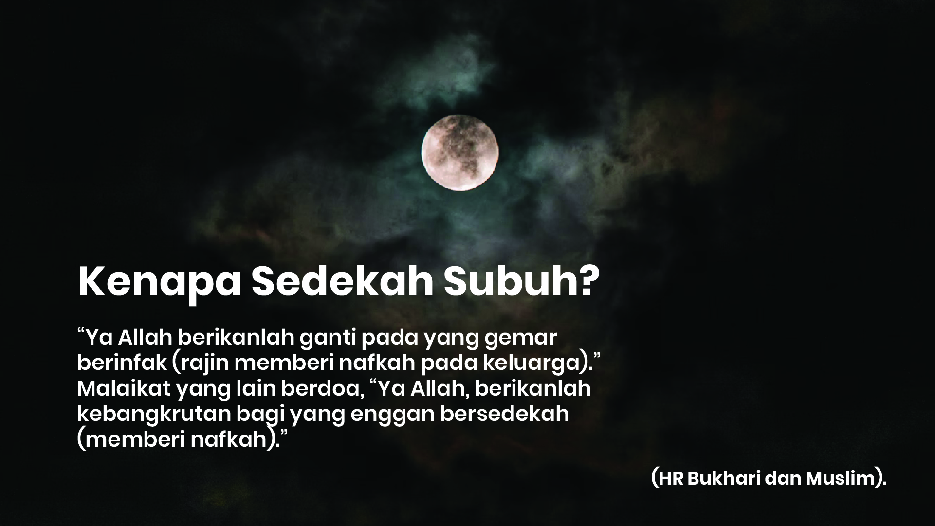 Dari Abu Hurairah, Nabi Muhammad SAW bersabda “Ya Allah, gantikan yang lebih baik bagi orang-orang yang infak di subuh hari”