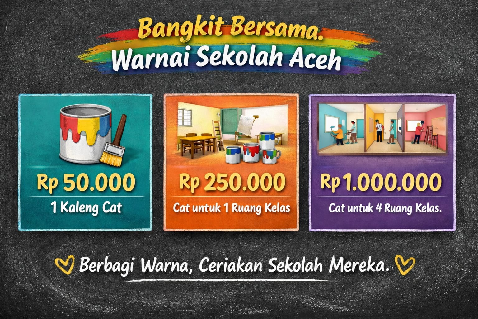 🎨 Rp50.000 = 1 kaleng cat untuk sekolah di Aceh