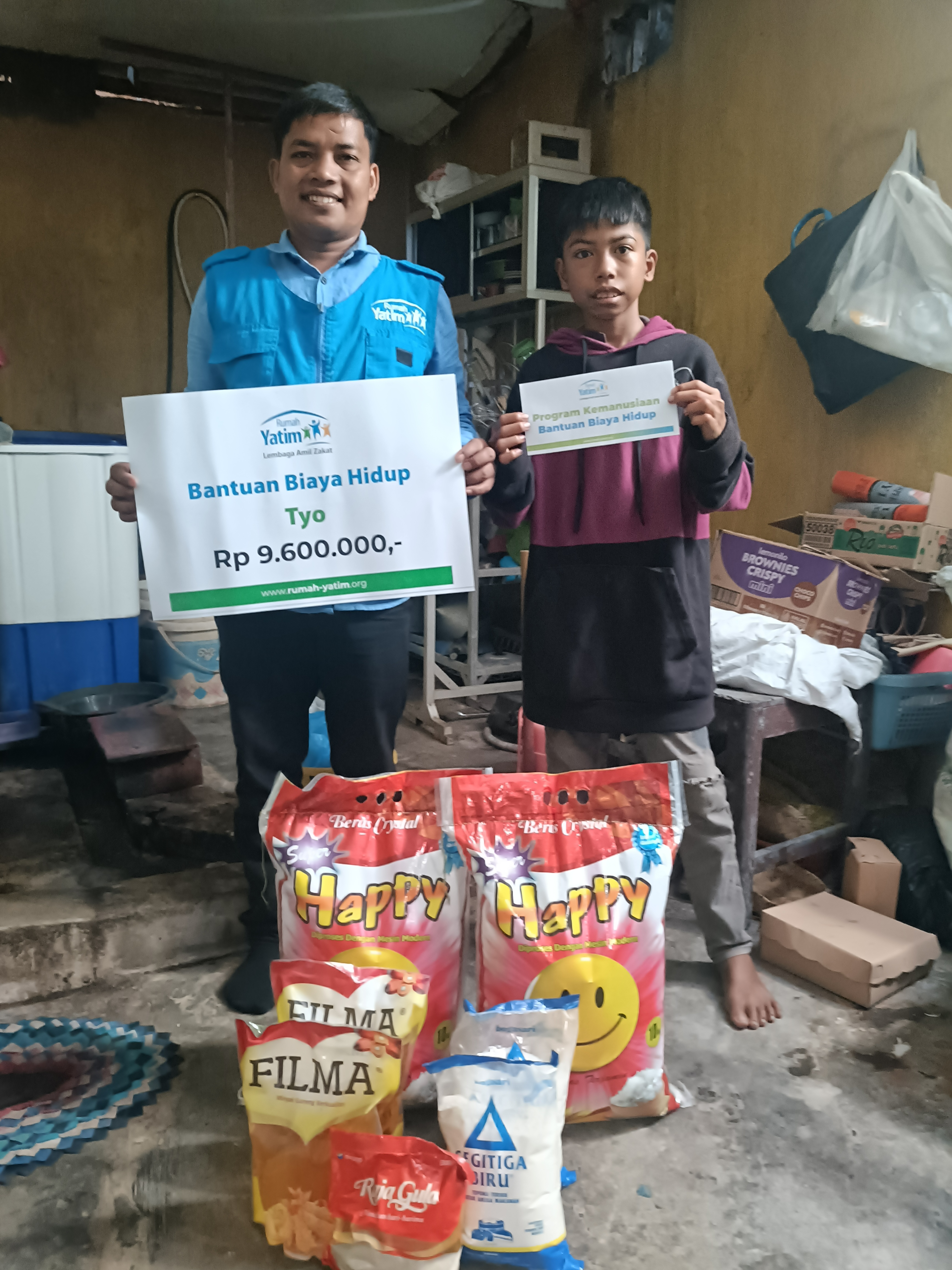 Alhamdulillah dana yang di titipkan melalui https://berkahyatim.com/tyory telah kami salurkan kepada Tyo. Alhamdulillah untuk penyaluran Tahap 1 ini kami datang dengan memberi bantuan berupa Uang Tunai Dan Sembako.
