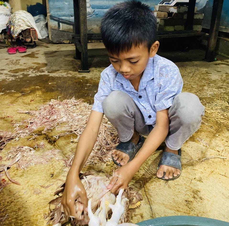Seringkali Hendra dan neneknya hanya di upah dengan ikan atau jeroan ayam untuk lauk makan bersama neneknya.