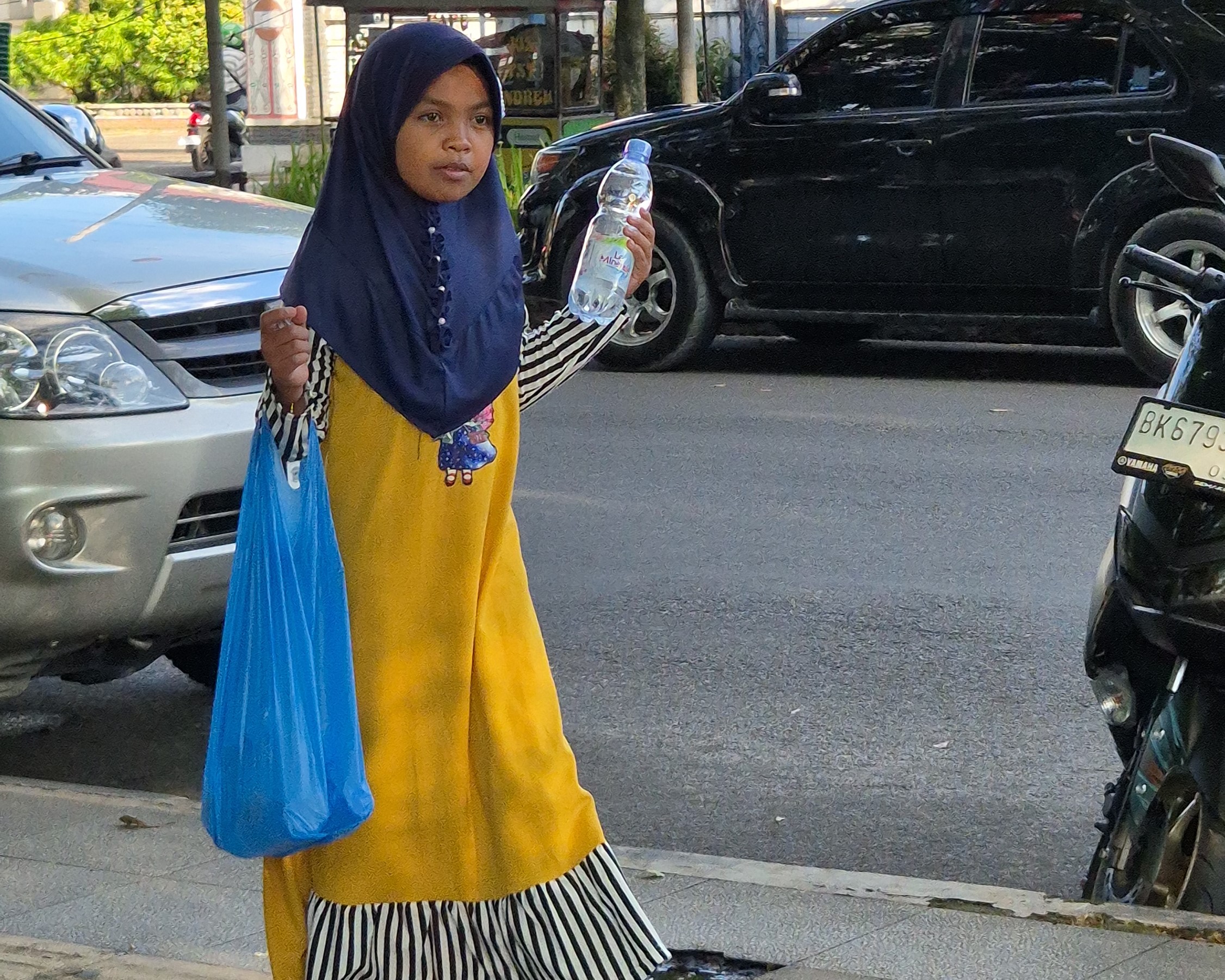 Kini, Syifa harus berusaha cari nafkah, setiap hari ia harus berjalan sejauh 3 KM menawarkan air mineral ke setiap orang yang ditemui di jalanan.