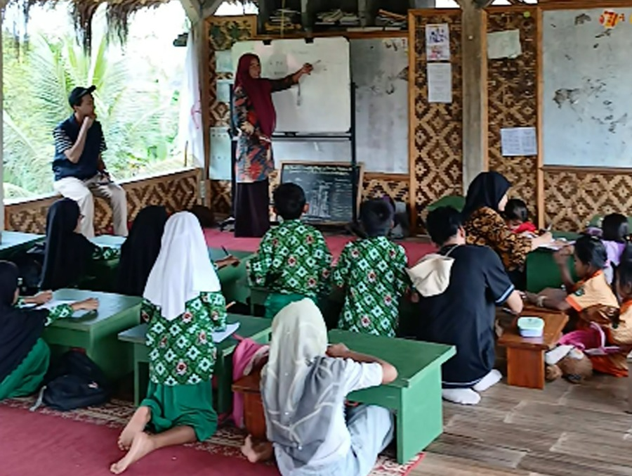 Bersama anak-anak lain dari PAUD hingga kelas 4 SD, Yayah belajar ditemani 6 guru relawan yang bergantian mengajar.