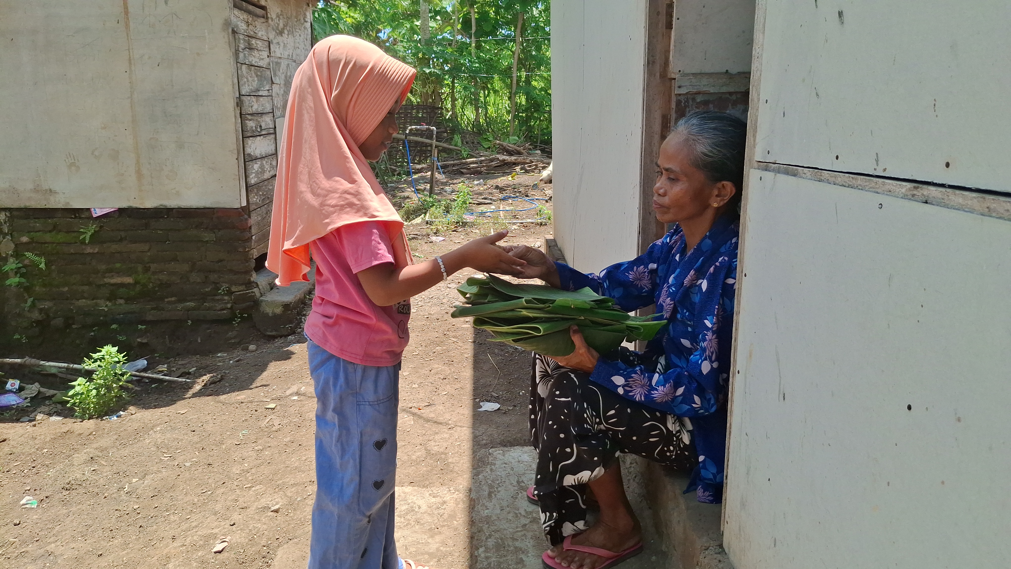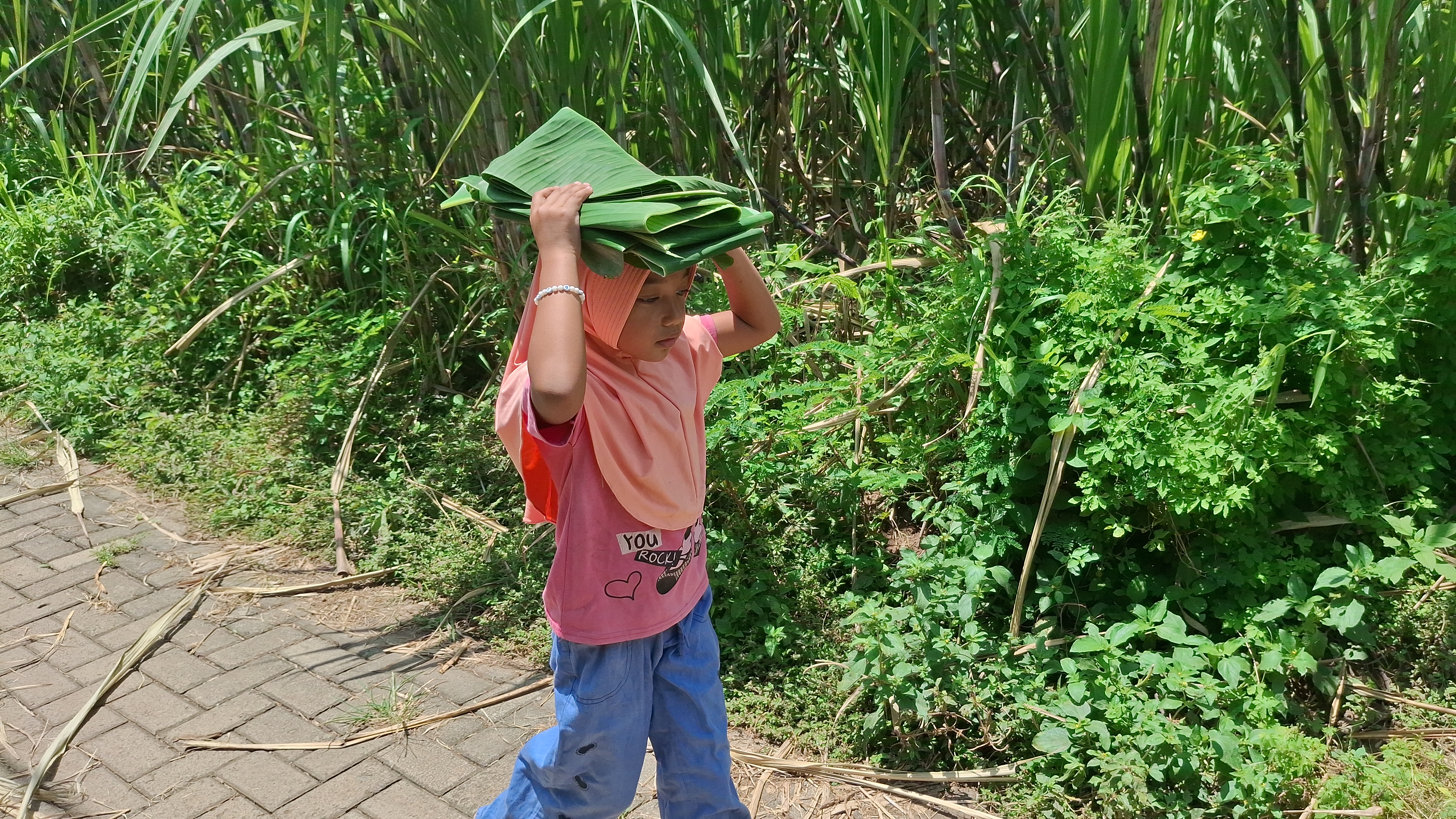 Setiap hari, Bella hanya membawa 1–5 ikat daun pisang. Dari itu, ia mendapat upah sekitar Rp5.000. Bahkan jika dagangannya tak laku, ia tetap pulang dengan tubuh lelah—dan seringkali hanya makan sekali sehari, itu pun dengan garam.